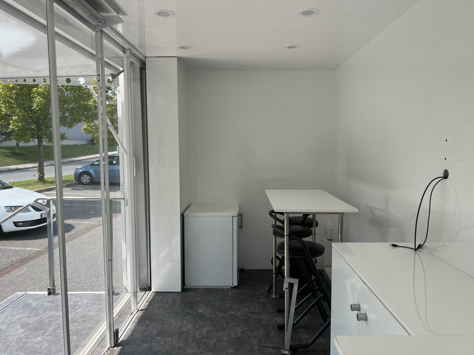 Vnitřní výbava prezentačního přívěsu – rozvody el. energie, led osvětlení. Přívěs lze upravovat a brandovat dle konkrétních požadavků klienta.
